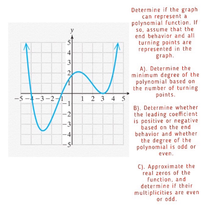 To find the degree of the polynomial, you first have to identify each term of that polynomial, so to find the degree of therefore, degree= 2 and leading coefficient= 5. Once we know the basics of graphing polynomial functions, we can easily find the equation of a polynomial function given its graph. Identify the exponents on the variables in each term, and add them together to find the degree of each term. It doesn't matter how the constant is expressed. Degree of a polynomial with more than one variable: Just use the 'formula' for finding the degree of a polynomial. The my guess is that in the modern age of high frequency trading algorithms and online banking, most anything to do with how to securely transmit. Polynomial functions of degree 2 or more have graphs that do not have sharp corners; Is not a polynomial because the expression is in the denominator of the term. Naming polynomial degrees will help students and teachers alike determine the number of solutions to the equation as well as being able to recognize how these operate on a graph. An nth degree polynomial in one variable has at most n real zeros. Roots, or zeros, of a functions are the points where f(x) = 0. Precalculus polynomial functions of higher degree end behavior.